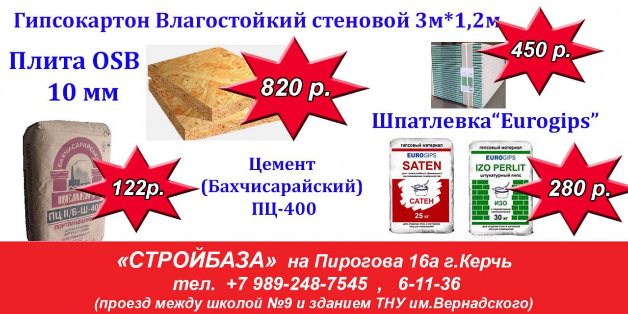 …. и многие другие стройматериалы ПО СУПЕРЦЕНАМ !