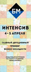 http://molodost.bz/thefirst/?partner_code=ID39 - «Бизнес Старт». Главный двухдневный треннинг «Бизнес Молодости». Пройдет 4 – 5 апреля с 12.00 – 20.00. Это выжимка самого основного из 2-ухмесячного курса «ЦЕХ».