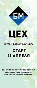 4 и 5 апреля пройдет 2-ух дневный тренинг по старту бизнеса «Бизнес Старт», а 11 апреля стартует лучший продукт проекта БМ – «ЦЕХ» (2-ух месячный практикум по старту и развитию своего бизнеса)