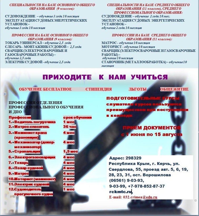 «Керченский морской технический колледж» приглашает на день открытых дверей!