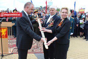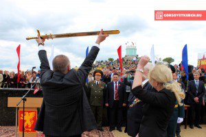 В рамках празднования 70-летия Победы, в Керчи 9 мая, на вершине горы Митридат "Меч Победы" передали ветеранам и председателю горсовета.