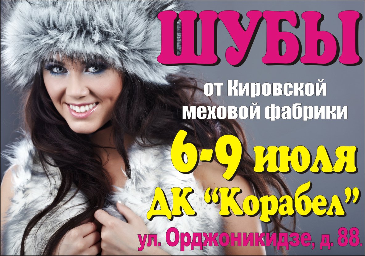 Выставка-продажа МЕХА с 6 по 9 июля Орджоникидзе, 88, в ДК "Корабел" с 10 до 19 часов.