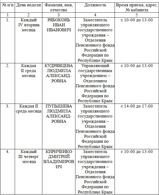 Пенсионный фонд Керчи сообщает график приема граждан