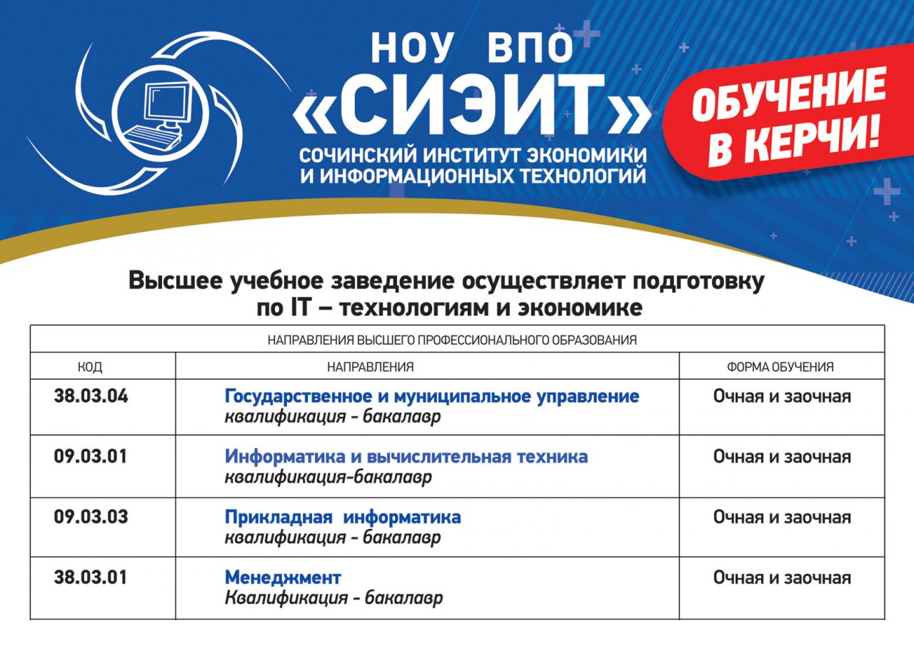 "Сочинский институт экономики и информационных технологий приглашает на учёбу.
