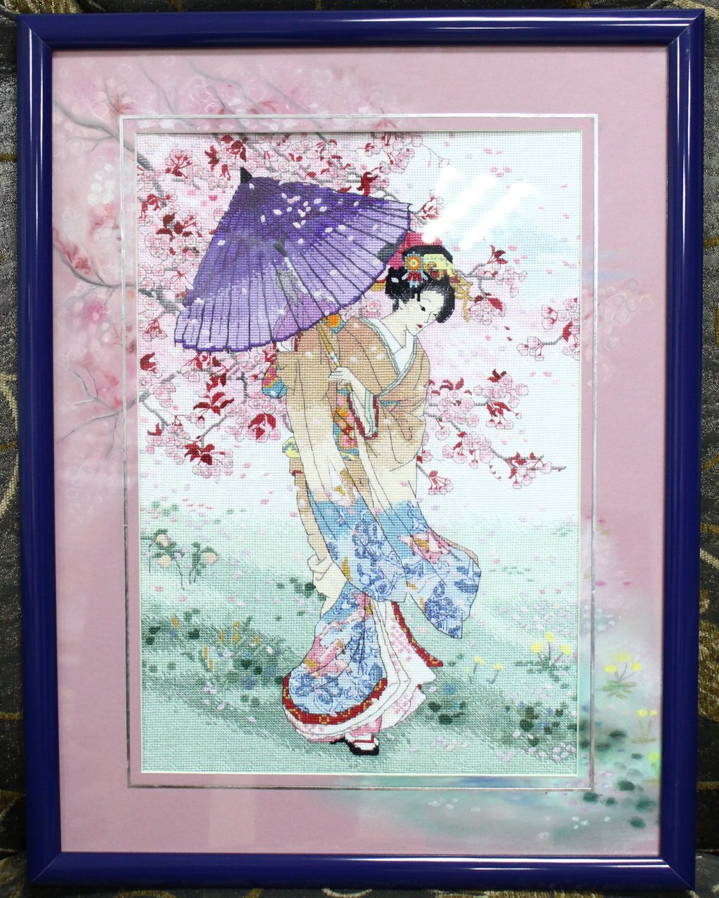 Вышивка крестом, паспарту, дорисовка пастелью,