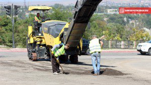 «Пока на пересечении ул. Чкалова и Годыны застывает свежеуложенный асфальт, Куль-Обинское шоссе чистят грейдером от изношенного асфальта»
