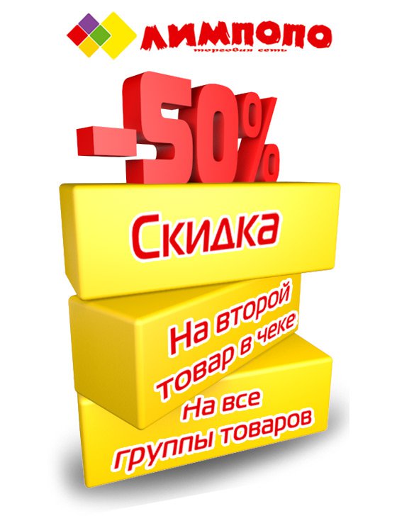 В интернет-магазине limpopo.com.ru действует акция «-50% НА ВТОРОЙ ТОВАР*».