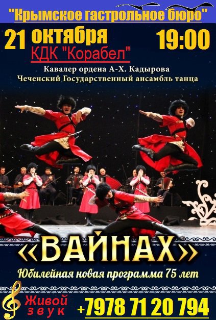 Уважаемые зрители, концерт Государственного ансамбля танца «Вайнах», который должен был состояться 21 октября, переносится и состоится 21 ноября в 19:00 на сцене КДК "Корабел".