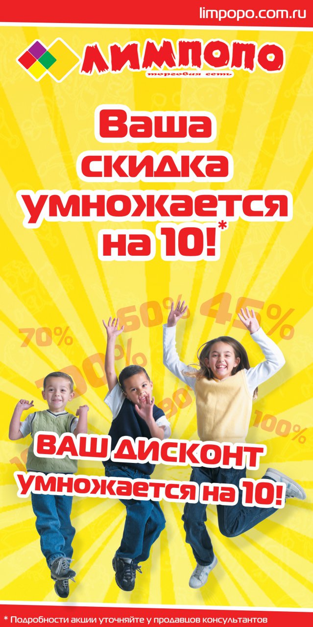 А уже на этих выходных во всех розничных магазинах вас ждет акция «Ваша скидка умножается на 10!»*