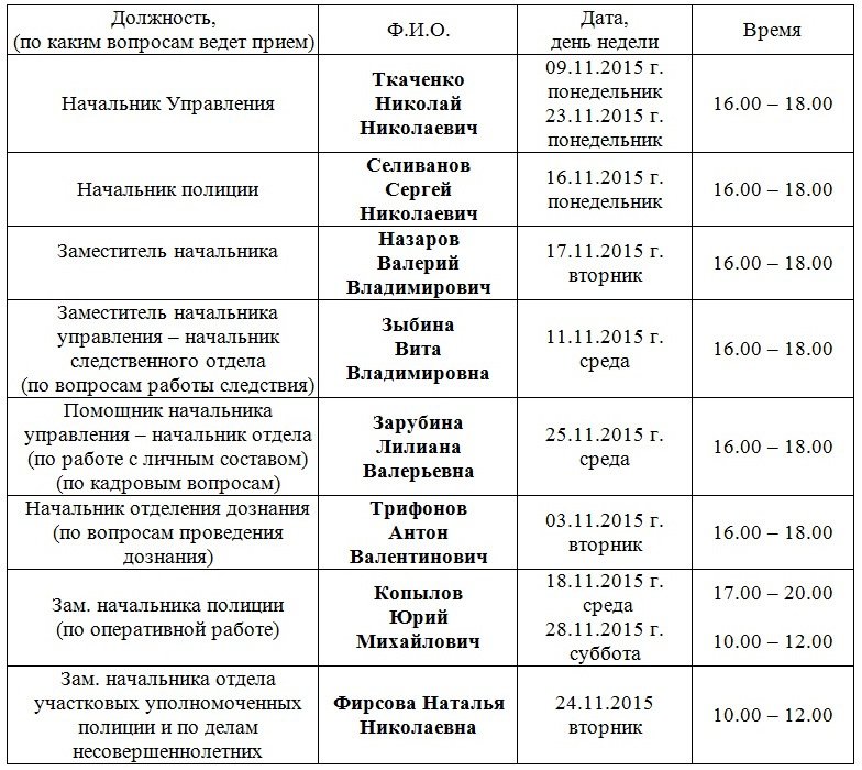 приема граждан руководящим составом УМВД России по г. Керчи