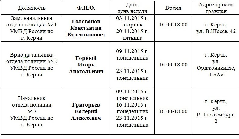 приема граждан начальниками отделов полиции УМВД России по г. Керчи