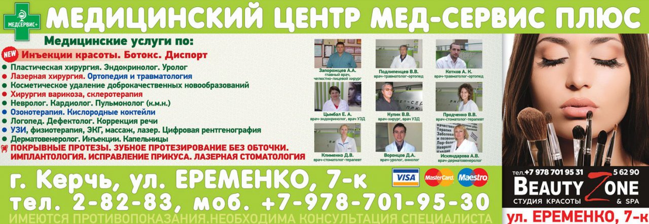 Приём ведёт врач-стоматолог-ортопед, врач-стоматолог-хирург, челюстно-лицевой хирург, врач-стоматолог, детский стоматолог, сертифицированный специалист Международного Центра Лазерного Обучения (ICLE) в США, член Стоматологической Ассоциации России и Ассоциации стоматологов Республики Крым, помощник депутата Государственного Совета Республики Крым, участник международных и всероссийских симпозиумов, конференций и мастер-классов по дентальной имплантологии, ортопедической стоматологии и челюстно-лицевой хирургии, главный врач медицинского центра «Мед-Сервис Плюс» Запорожцев Александр Александрович.