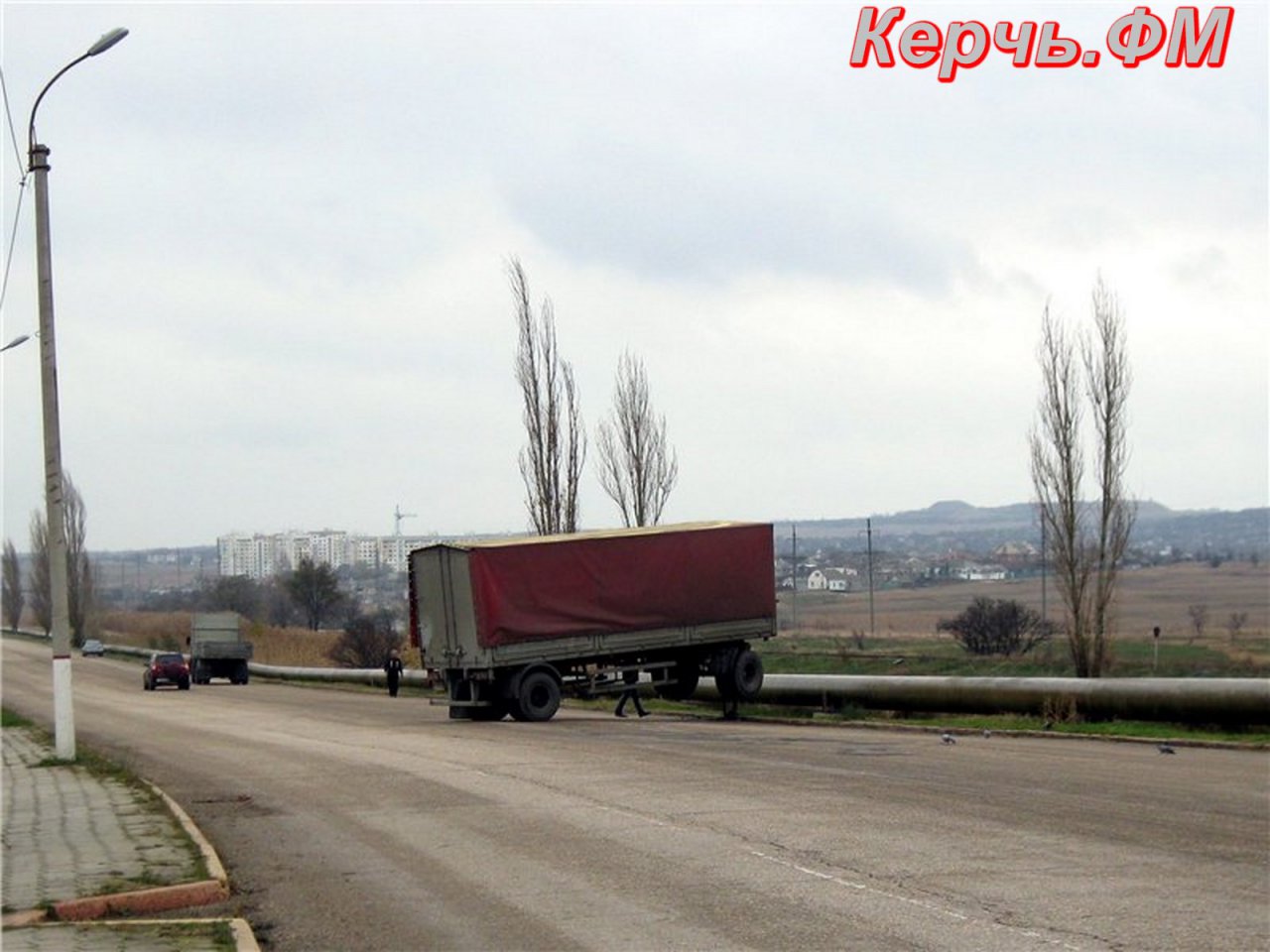 В Керчи на дороге оторвался прицеп движущегося грузовика