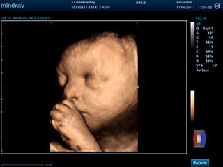 4D УЗИ дает возможность разглядеть мельчайшие детали строения, например, пол ребенка, количество пальчиков на ручках и ножках. Если проводить 4 d диагностику на 32 неделе беременности, то можно увидеть мимику ребенка, как он улыбается или хмурится.