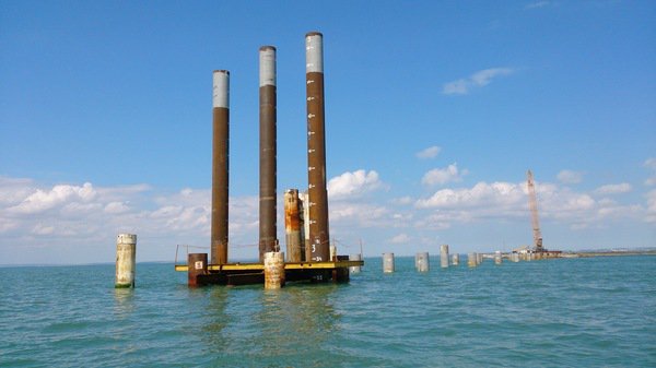 Для строительства основного моста через Керченский пролив, был возведен временный рабочий мост: