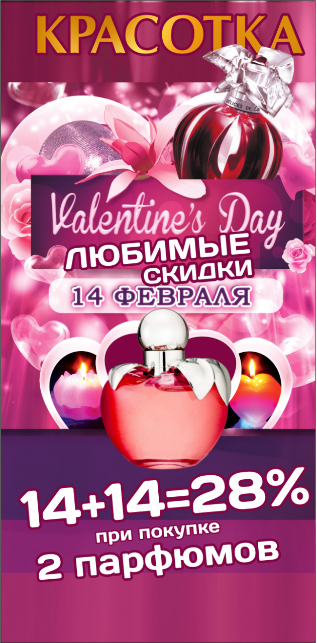 Только в «Красотке» с 11.02.2016 по 14.02.2016 Скидка на всю парфюмерию 28%
