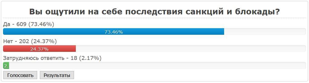 Большинство керчан ощутили на себе последствия блокады и санкций. Около 73% керчан ответили в опросе Керчь.ФМ, что ощутили на себе последствия блокады и санкций.