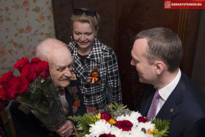 Вчера в Керчь на День освобождения города прибыл вице-спикер Государственного совета Крыма Константин Бахарев. В рамках визита он вместе с председателем горсовета Ларисой Щербулой, главой администрации Сергеем Писаревым поздравил с праздником выдающегося человека — фронтовика, летчика, дважды раненого участника обороны Москвы, боев по освобождении Польши, Венгрии, Болгарии и взятия Берлина Николая Ивановича Шарапова.