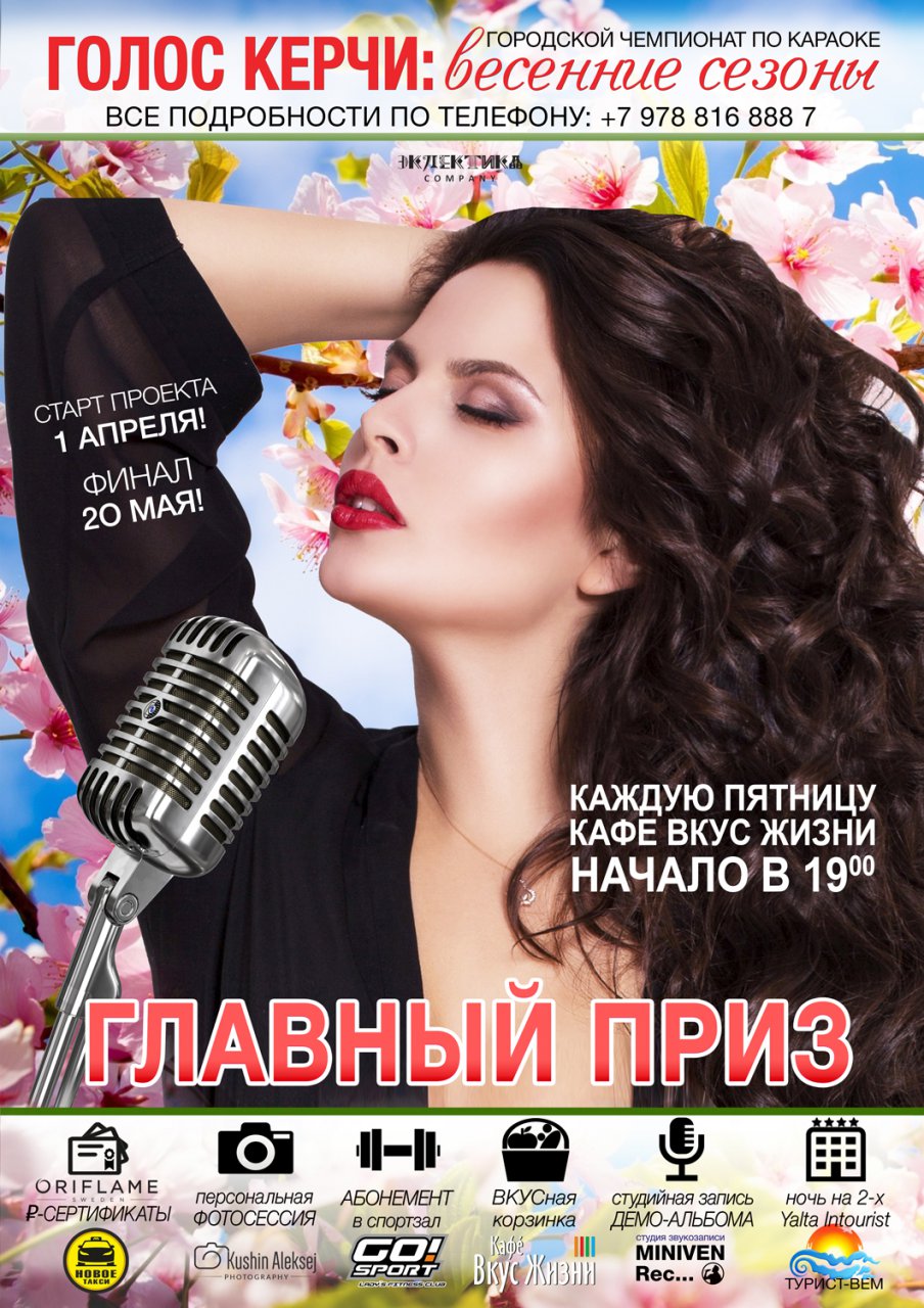 "Кафе Вкус Жизни" приглашает вас принять участие в музыкальном проекте "ГОЛОС КЕРЧИ: весенние сезоны", в котором вы можете выиграть ГЛАВНЫЙ ПРИЗ, а именно: