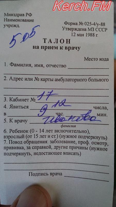 Керчанин пожаловался редакции Керчь.ФМ на ситуацию с медобслуживанием во второй городской поликлинике. Что бы попасть на прием к участковому терапевту, талончик надо брать за 2 недели.