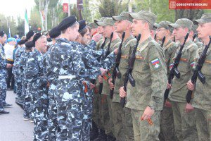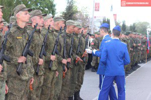 В ходе мероприятия, ветераны Великой Отечественной войны и зарничные отряды вручили Георгиевские ленты участникам парада.