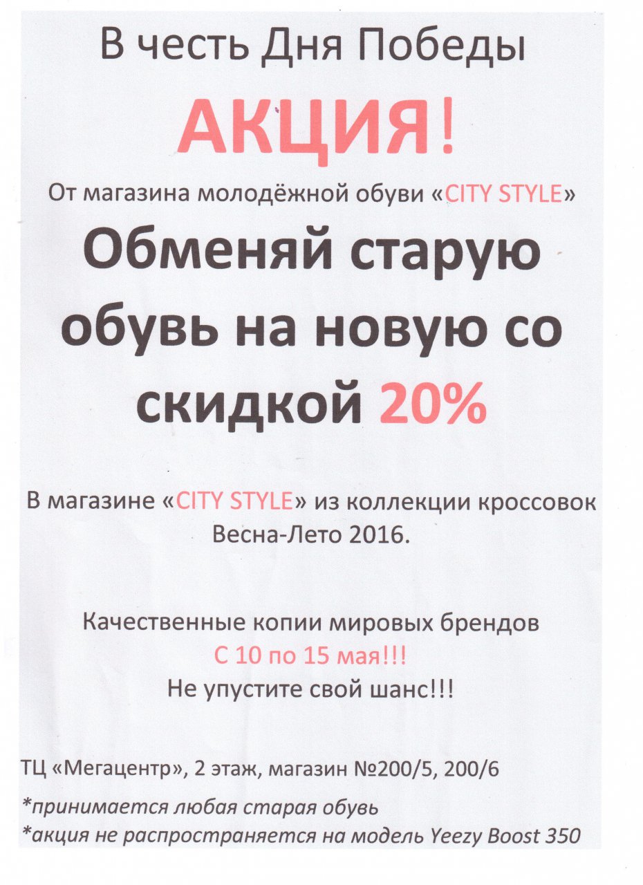 В честь Дня Победы Акция от магазина молодежной обуви «CITY STYLE»