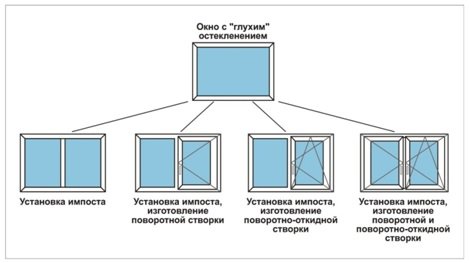 - замена глухого стеклопакета (окна) на створки: поворотные, поворотно-откидные, фрамужные;