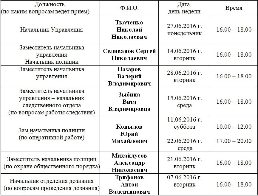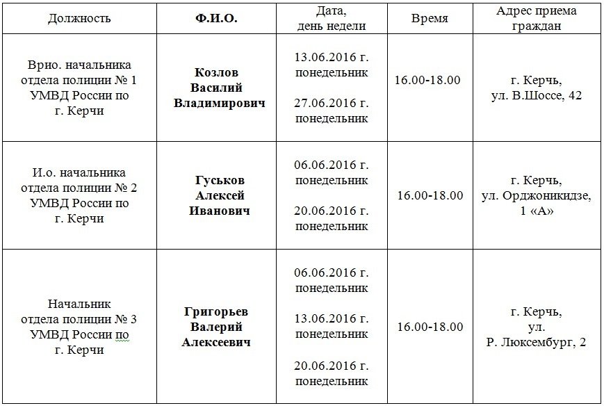 приема граждан начальниками отделов полиции УМВД России по г. Керчи