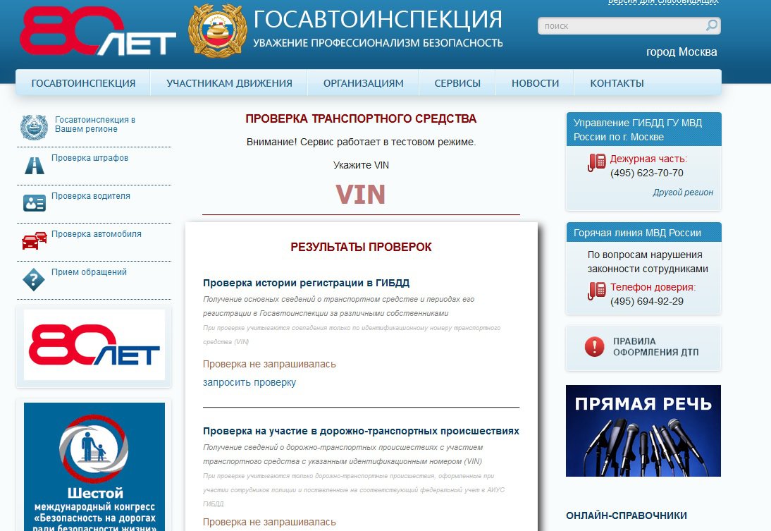 К 80-летнему юбилею Госавтоинспекции, на официальном сайте службы, заработала обновленная версия интерактивного сервиса проверки транспортных средств. Теперь онлайн можно проверить историю регистрации транспортного средства в ГИБДД, участие в ДТП, нахождение в розыске и наличие других ограничений.