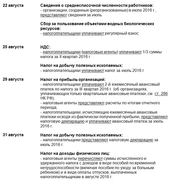 Межрайонная инспекция ФНС России  №7 по Республике Крым сообщает налоговый календарь на август 2016 года, - передает Керчь.ФМ.