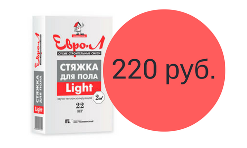 Теплоизолирующая и звукоизолирующая стяжка Light Евро-Л (22 кг) за 220 рублей.