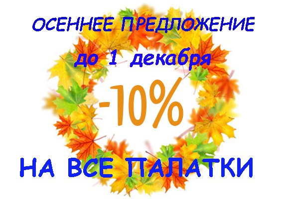 Внимание! В магазине «Сокол» до 1 декабря 2016 года действует скидка 10% на палатки, кемпинговую мебель, рыболовные кресла и стулья.