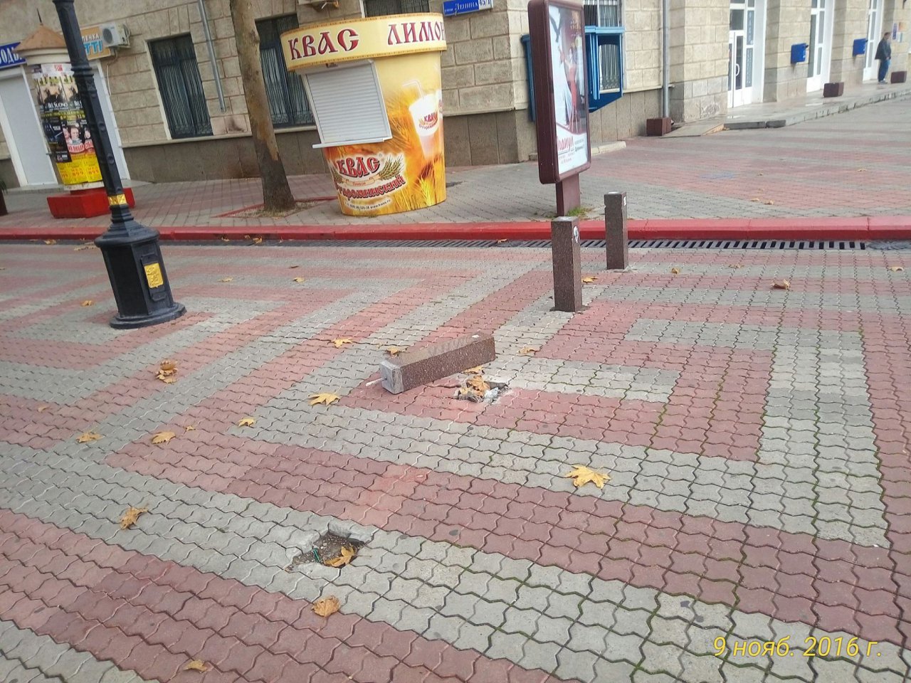 Также, в центре города неизвестные вырвали один из столбиков, которые установлены на Ленинской. Начальник управления муниципального контроля сообщил, что о данной ситуации сообщили в УЖКХ для принятия мер.