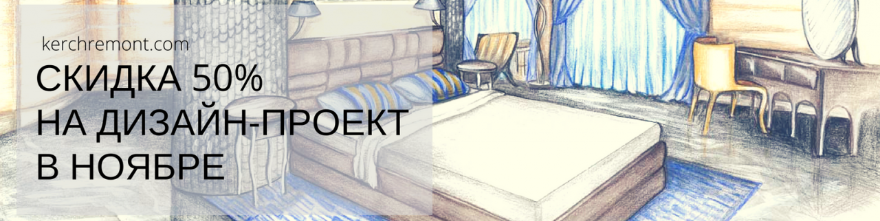До конца ноября в компании «Керчьремонт» действует скидка 50% на разработку дизайн-проекта. Если вы заключите договор до 30 ноября, стоимость услуги составит 400 рублей за квадратный метр.