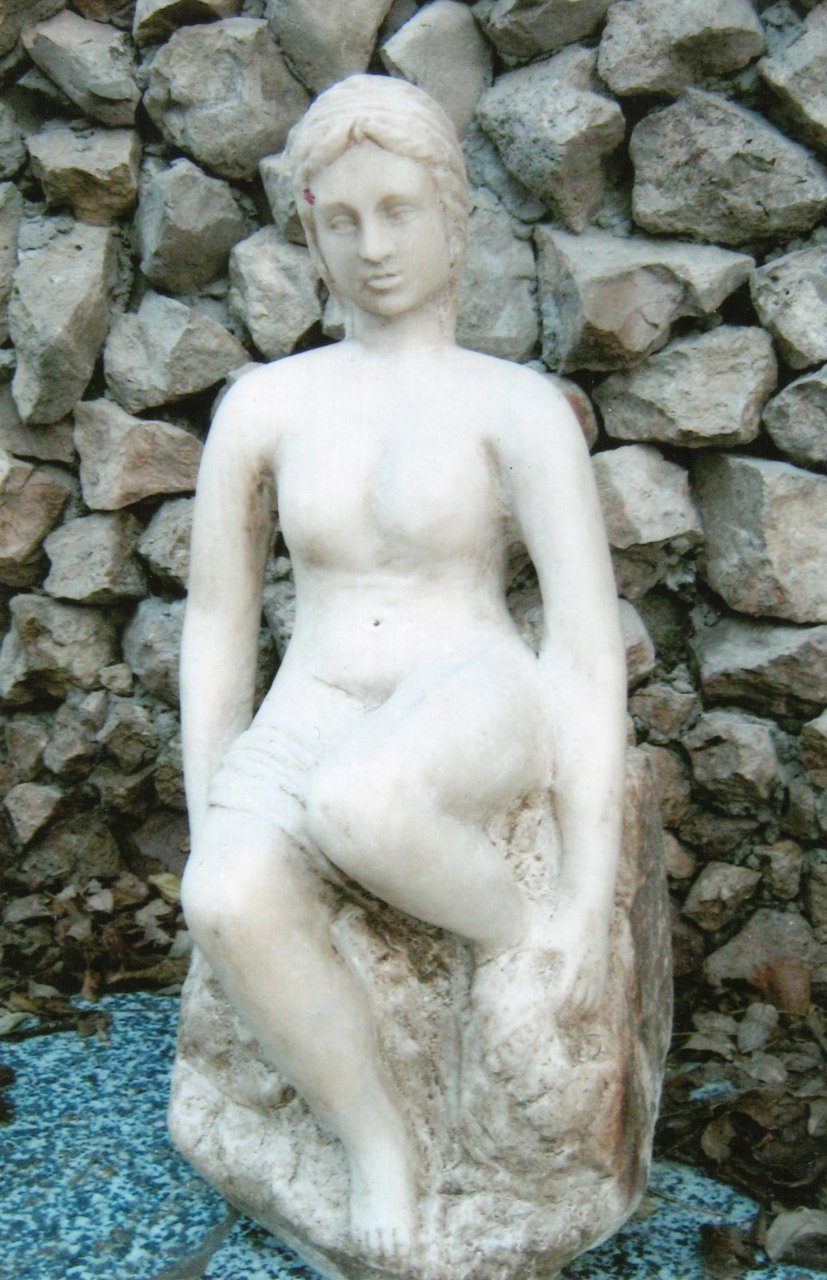 Из мрамора, в форме Афродиты, которая находилась в фонтане