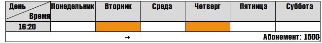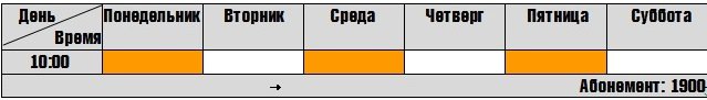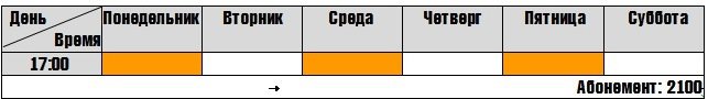 Абонемент действует с 20:00 до 21:00 с ПН по ПТ.