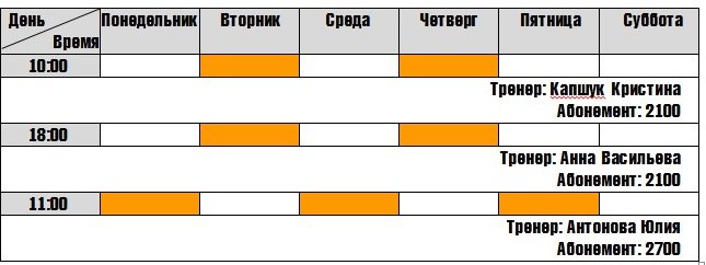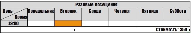 8 тренировок (2900 р), 12 тренировок (3900 р)