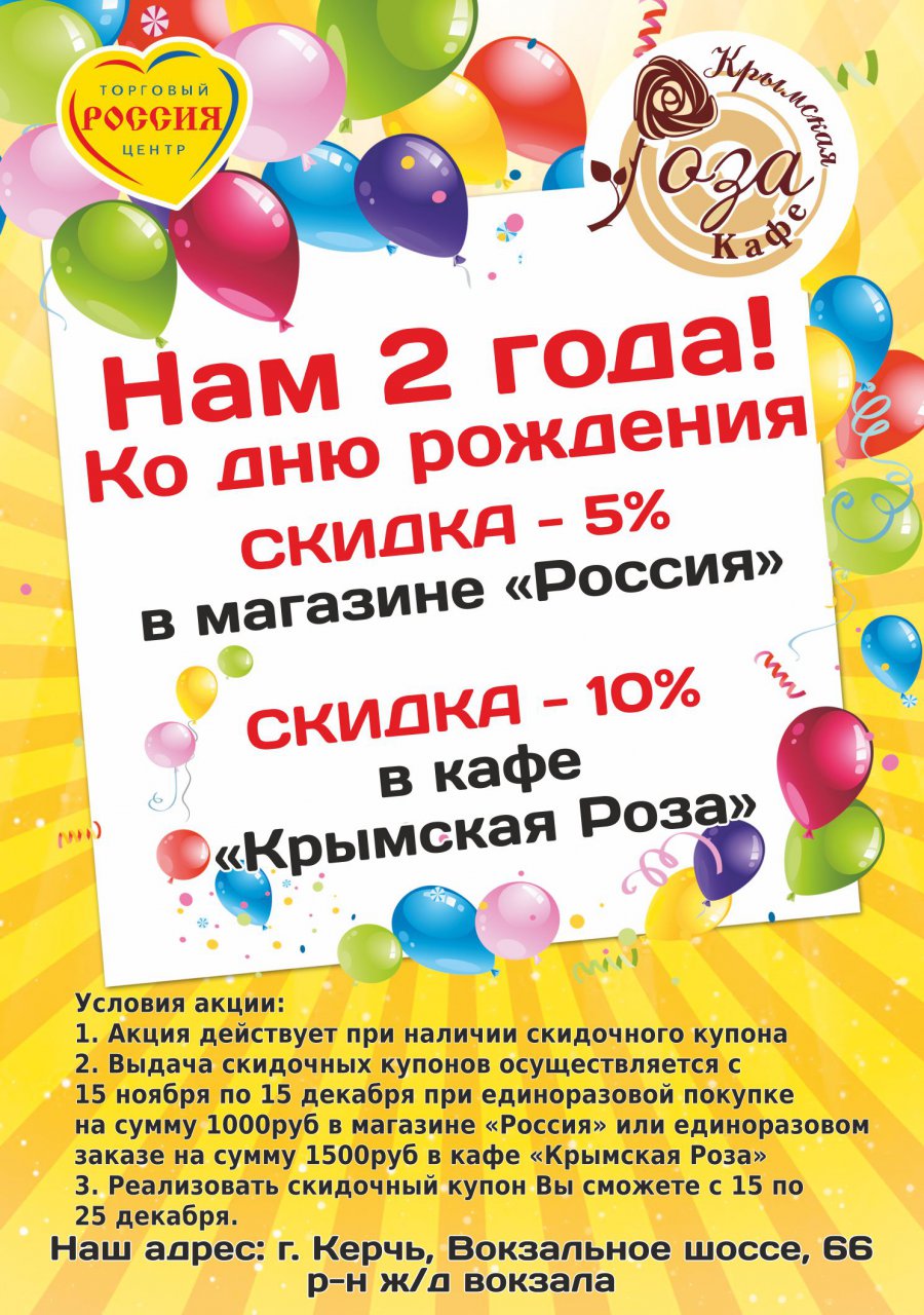 Торговый центр «Россия» празднует 2 года и дарит скидку 5%