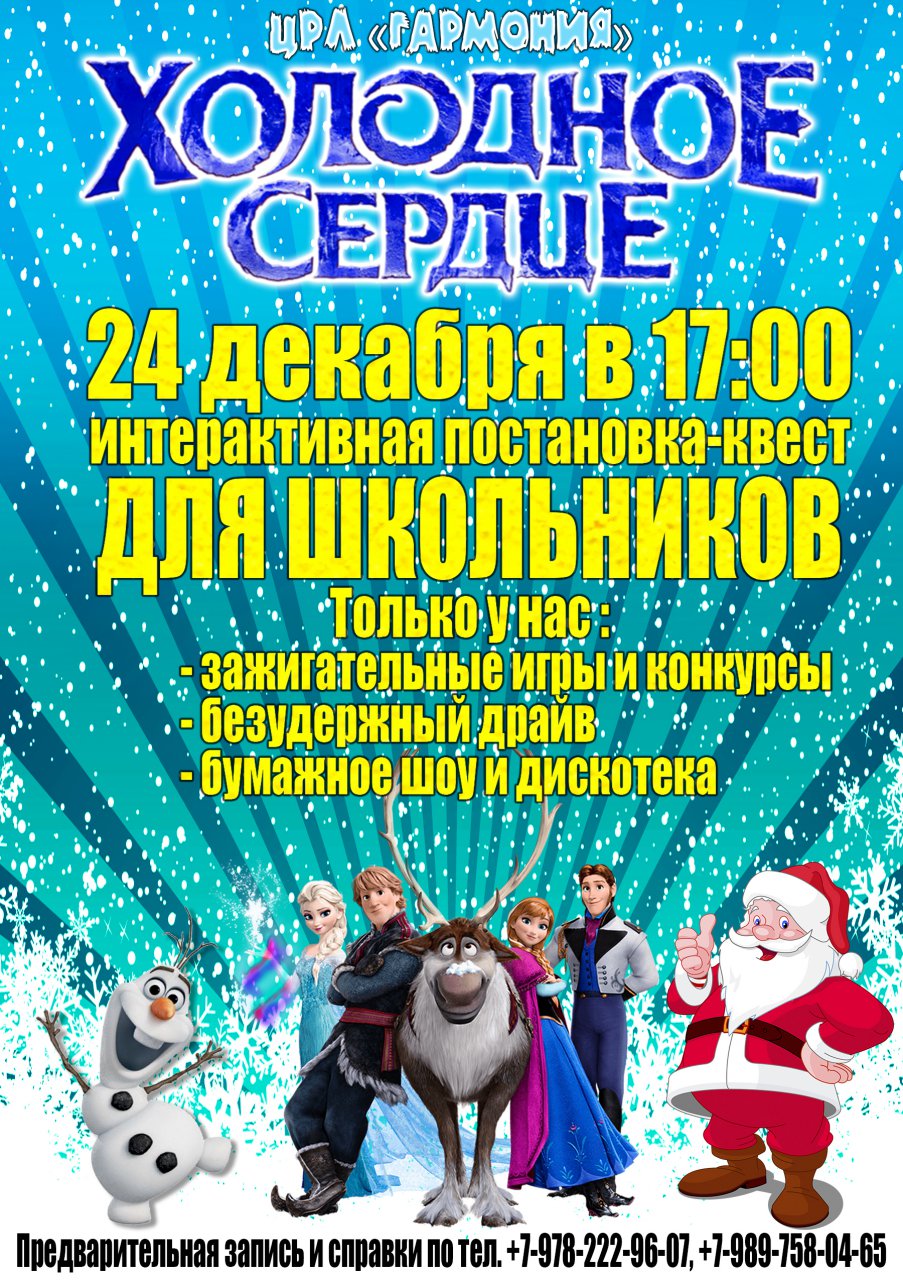 Герои мультфильма «Холодное Сердце» приглашают Вас побывать в новогодней сказке!