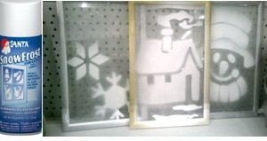 Великолепный «аэрозольный лед». Создает эффект, ледяных узоров, инея и наледи на поверхности стекол, зеркал, стеклянных украшений, шаров и игрушек. Можно использовать с трафаретами.