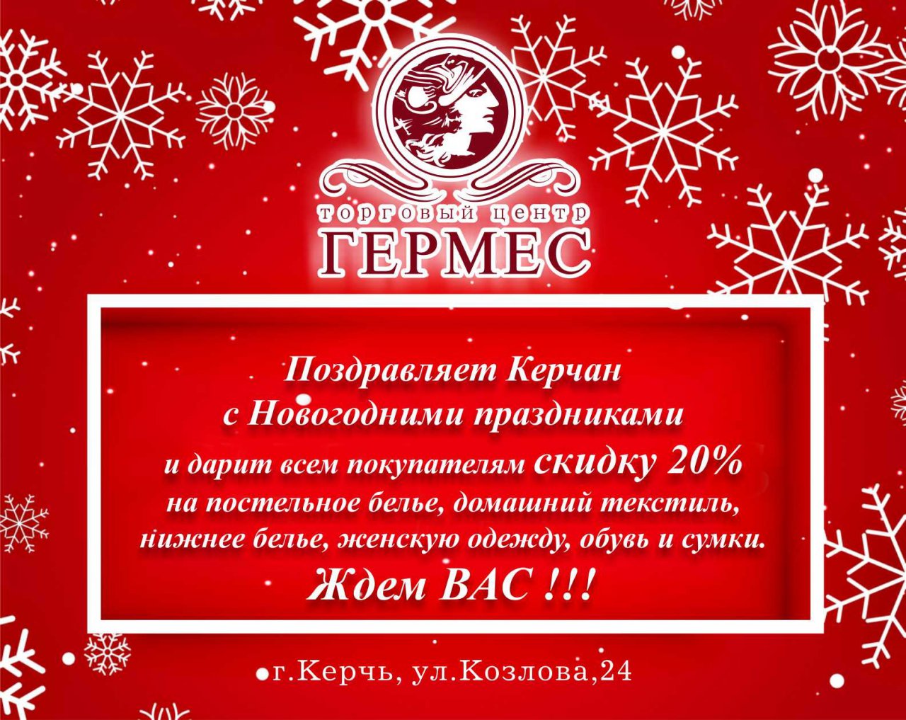 Торговый центр «Гермес» поздравляет с новогодними праздниками и дарит всем покупателям скидку 20% на: