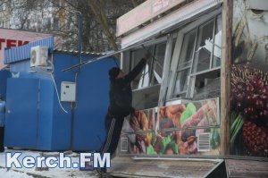 В Керчи, 31 января на улице Генерала Петрова, грузовик въехал в ларек. Как Керчь.ФМ рассказали очевидцы, грузовик проезжая мимо колбасного ларька зацепился за его козырек и начал его тянуть. Из-за скользкой дороги водитель машины не смог вовремя затормозить.