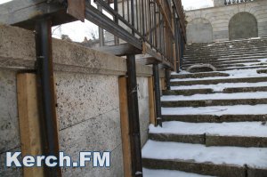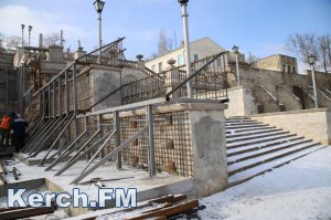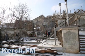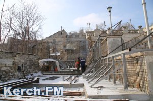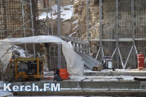 В Керчи 31 января продолжаются противоаварийные работы на Митридатской лестнице. На данный момент рабочие, несмотря на минусовую температуру на улице, укрепляют основание лестницы, - передает Керчь.ФМ.