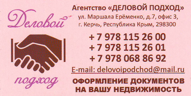 Оформим документы на недвижимость: купля-продажа, дарение, аренда, другие сделки, вступление в наследство, приватизация жилья, комнат в общежитии, приватизация земельных участков, другие операции. Кадастровый учет. Оценка. Справки. Технические и межевые планы. Юридическая помощь, представительство в суде. Сопровождение сделок с материнским капиталом. Керчь и Ленинский район.