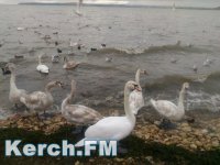 В редакцию Керчь.ФМ постоянные читатели прислали фотографии стаи лебедей, которые плавают в море у пляжа в районе Сморжевского. Керчане рассказали, что лебеди - ручные, не боятся людей и выходят за едой прямо на берег, так как в море еду на лету перехватывают чайки.