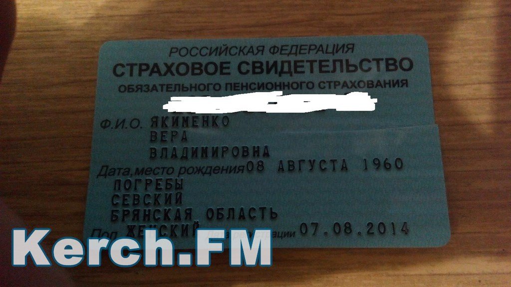 В редакцию Керчь.ФМ обратился постоянный читатель, который на днях нашел СНИЛС на имя Веры Якименко в маршрутке №41. Обращаться по телефону: +79885076754