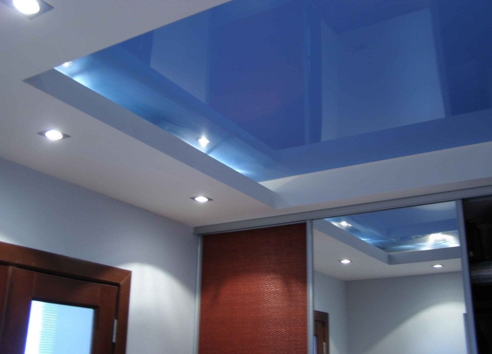 Натяжные потолки с подсветкой (когда соединение двух уровней подсвечивается светодиодной лентой или другими способами). Потолок с подсветкой может быть выполнен и в один уровень, например, при помощи специального профиля можно создать так называемые парящие натяжные потолки и по периметру установить светодиодную ленту.