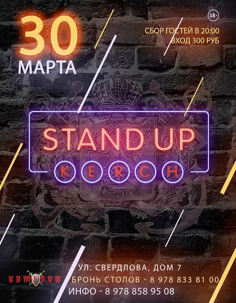 В Керчи продолжает набирать популярность такой юмористический жанр как «Stand Up». Практически каждую неделю десятки керчан собираются в одном из заведений города, чтобы отлично провести время, посмеяться над шутками комиков и расслабиться после трудовых будней.