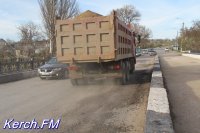 В Керчи разбитую дорогу по Аршинцевскому мосту отремонтировали, засыпав ямы переработанным асфальтом. Как передает корреспондент Керчь.ФМ, крошки тут же разносятся по полотну большегрузами.