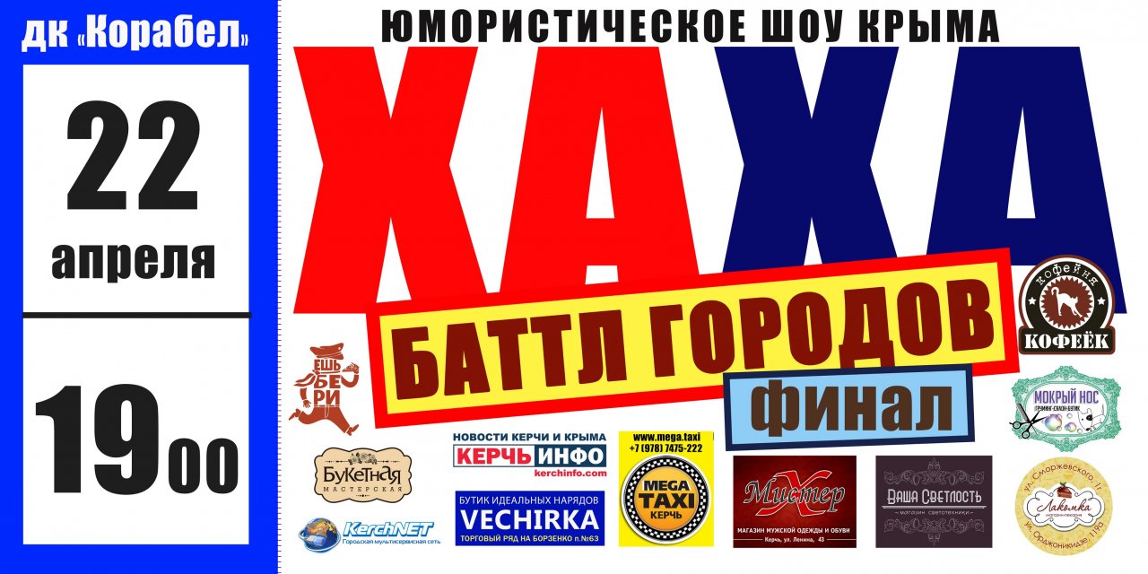 22 АПРЕЛЯ В 19.00 в ДК КОРАБЕЛ ФИНАЛ ХАХА БАТТЛА ГОРОДОВ